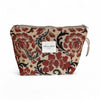 Grande pochette avec fermeture éclair sur le dessus et poignée en corde beige sur le côté. Fabriquée en tissu jacquard épais avec un motif floral dans des tons beiges et rouges. Pour un entretien approprié, laver à l'eau froide et ne pas sécher en machine.