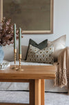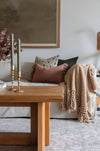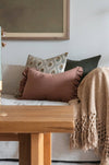 Voici NOREEN, un nouvel imprimé botanique en blocs, avec des vignes vertes tourbillonnantes sur un lin beige neutre à la texture et à la qualité rustiques. Ce motif accrocheur se distingue dans n'importe quel espace, ajoutant à la fois le charme typique d'un cottage et une touche artistique artisanale. Imprimé à la main en Inde, ce textile est vraiment unique et représentatif de centaines d'années de tradition et de savoir-faire. **Photos mises à jour de la dernière collection de tissu** Conçu et fabriqué par Rug & Weave, au Canada. Recto : 100 % lin imprimé à la main Dos : 50 % lin, 50 % coton Doublure : 100 % coton Détails : *veuillez noter qu'en raison de la nature artisanale de ce textile, une légère variation de couleur et d'impression est à prévoir et constitue la marque d'un produit véritablement fait main -insert vendu séparément -Fermeture à glissière en laiton apparent YKK Option « avec insert » : comprend un insert de coussin en plumes et en duvet de qualité supérieure Entretien : -nous reco