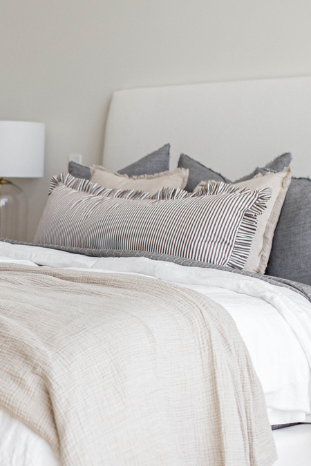 Housse de Coussin Traversin avec Volants à rayures brunes et blanches
