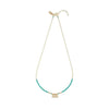 Collier décoré de blocs de perles en turquoise et de pampilles en chaîne or laminé 14K ornées de perles en or laminé14K.