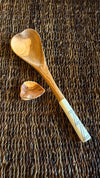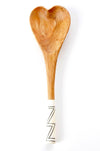 KENYA: Cuillère de cuisson cœur en bois d'olivier sauvage avec poignée zigzag