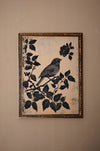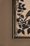Les Secrets du Vent capture la poésie de la nature à travers l'illustration d'un oiseau posé sur une branche, entouré de feuillage et d'une fleur. Le contraste entre le noir profond et le fond beige évoque une atmosphère calme et mystérieuse, parfaite pour ajouter une touche de nature élégante à votre espace.